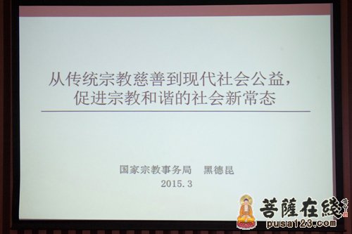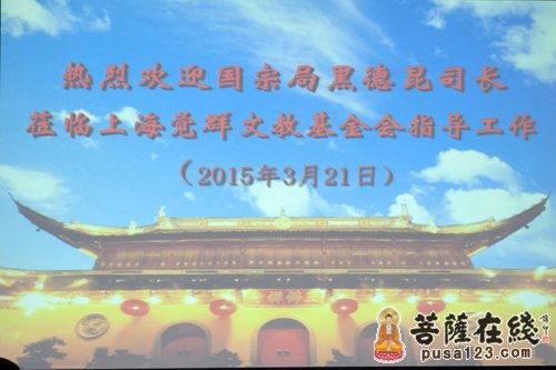 菩萨在线上海讯 2015年3月21日上午,国家宗教事务局业务三司司长、副巡视员黑德昆应邀来到上海,为上海觉群文教基金会作了题为“从传统宗教慈善到现在社会公益,促进宗教和谐的社会新常态”的讲座。全国政协委员、玉佛禅寺方丈觉醒大和尚带领上海觉群文基金会的工作人员等约30余人聆听了讲座。