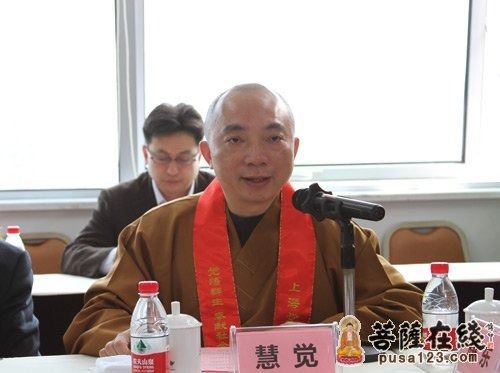上海觉群文教基金会秘书长上海玉佛禅寺慧觉法师发言(图片来源:菩萨在线 摄影:妙善)