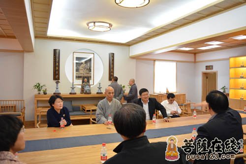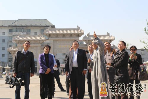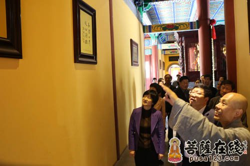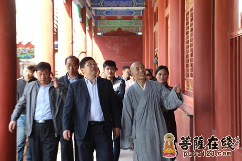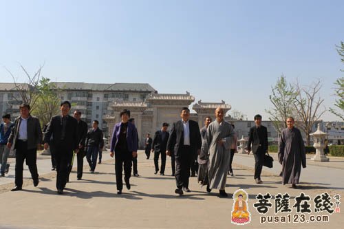王立兵部长一行在明憨大和尚等陪同下参观寺院