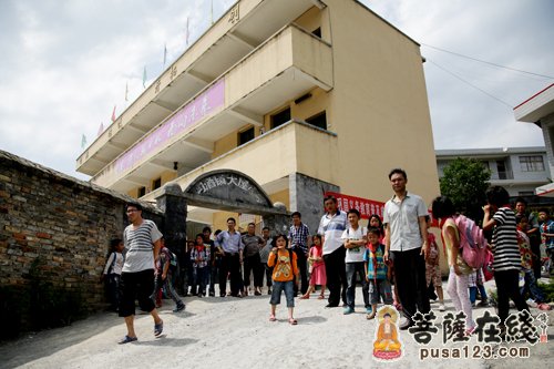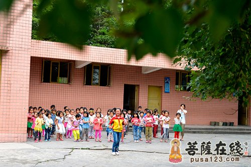 为了留守儿童之家,黄龙完小已经举债十多万。但这里仍旧显得有些阴暗潮湿,并且屋顶上长着一簇一簇的高草,整个房子就像消防队用来演练的荒废砖墙。 黄龙小学罗维乾校长非常重视觉群图书室的建立,感叹这比送钱更加的雪中送炭。负责图书室管理的杨春娥老师,非常年轻,但却一丝不苟的把每一本书都做了详细编码,并询问惟栋法师该如何科学规范化图书借阅登记。杨老师讲,孩子们自从图书室建立起来,已经大量借阅了很多图书,非常感谢上海玉佛寺以及众多的爱心人士。