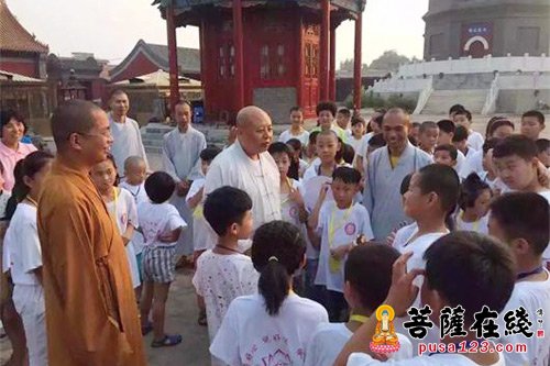 下午,保定市佛协会长真广法师赴观音寺看望小朋友们,小朋友非常喜欢真广法师,围着法师问这问那,真广法师嘱咐孩子们:在寺院大家一起好好玩,并祝愿小朋友欢乐营圆满举办。