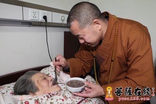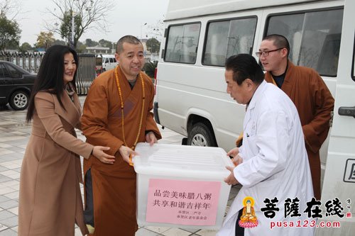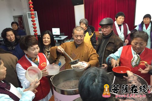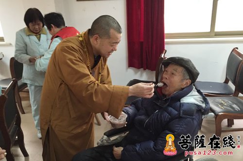 菩萨在线上海讯 2016年1月17日,一年一度的腊八节,上海二严寺举行腊八节慰问养老院老人,上海二严寺方丈智能大和尚一行带上暖暖腊八粥前往多家养老院。二严寺以这种方式来庆贺腊八节,表达全寺僧众对老人的关爱。