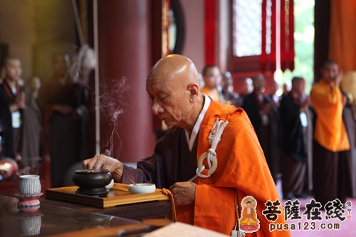 日本京都妙心寺派灵云院住持则竹秀南长老拈香(图片来源:菩萨在线 摄影:慧宏)