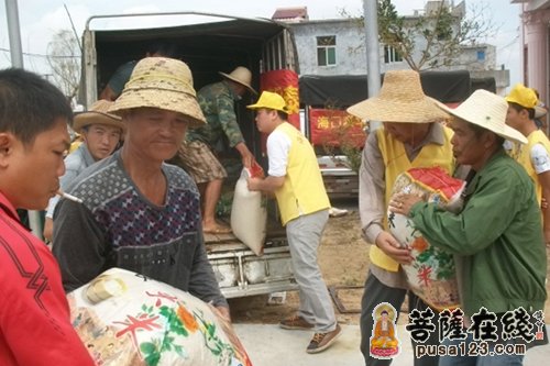 菩萨在线海南讯 2014年7月23日和25日,海南省海口泰华庵春雨志愿团上百名四众弟子,冒着烈日和酷暑,在海南省佛协副会长,海口泰华庵住持释成道和释自观法师的带领下,先后两次驱车往返近六百公里,深入到文昌市翁田镇、锦山镇的罗豆农场、新村、北坑北村、博文村等近10个村组,带去总价值22万元的现金和物资,看望慰问那里的受灾群众,并将钱物分发给需要帮助的灾民。用行动彰显佛菩萨的大慈大悲,让灾区群众同沾法喜。