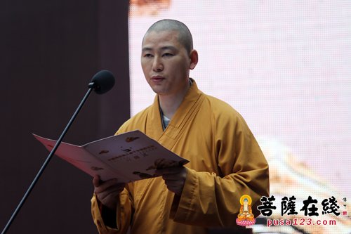 中国佛教协会副会长演觉大和尚宣读中国佛教协会的贺电(图片来源:大菩文化 摄影:妙雨)