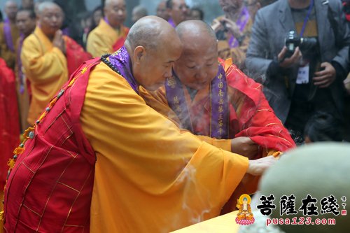 怀梵大和尚(右)拈香(图片来源:大菩文化 摄影:妙雨)