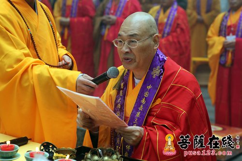 圣辉大和尚念诵祈愿文(图片来源:大菩文化 摄影:妙雨)