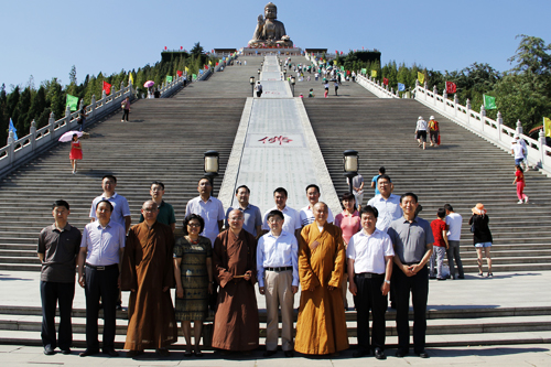 2015年7月4日上午,国家宗教局副局长陈宗荣、二司司长郭伟、研究室干部谢荣谦、唐熊一在山东省宗教局副局长岳富强、一处处长徐宏、烟台统战部副部长、宗教局局长于茂清、龙口市政协副主席、统战部长李顺军及龙口宗教局局长郑益宏的陪同下莅临南山禅寺调研,